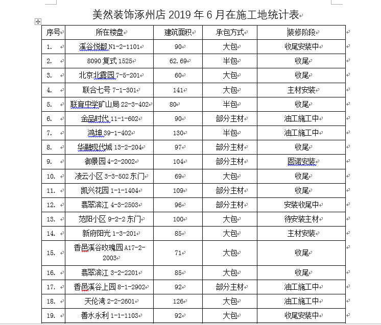 美然裝飾7月份在施項目數(shù)量達(dá)到80個,其中涿州在施項目共54個,高碑店23個,北京3個。 涿州52個家裝項目,2個工裝項目。 涿州52個家裝項目中:高鐵新城和香邑溪谷項目占據(jù)較大比重,其中理想灣4個,獅子城4個,牛津花園1個,華融現(xiàn)代城1個。香邑溪谷7個。另外天倫灣2個,翡翠濱江4個。 工裝項目中,涿州中餐館300平米左右,紅葉生活館200平米左右,美然裝飾負(fù)責(zé)設(shè)計和施工。 北京項目一個位于良鄉(xiāng),兩個位于西城區(qū),另外目前朝陽區(qū)一戶也已經(jīng)進(jìn)場施工,美然裝飾在北京同樣體現(xiàn)出了設(shè)計、質(zhì)量、價格全方位的優(yōu)勢,隨著業(yè)務(wù)的推進(jìn),北京的業(yè)務(wù)將呈現(xiàn)全面開花的趨勢。 高碑店的23個項目分布于15個小區(qū),其中玫瑰園3戶,英倫名郡2戶,鉑悅山3戶,萬和城2戶,幸福城2戶,松林店自建別墅及林語城別墅各1戶。